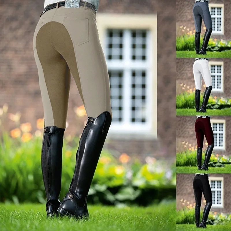 Women's Riding Tights - Stretch Slim Fit Equestrian Pants with Contrast Panels, Casual Skinny Jodhpurs for Horseback Riding