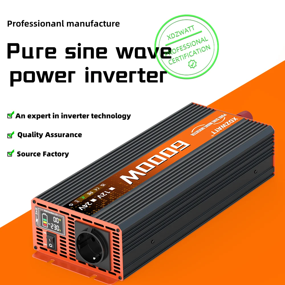 Pure Sine Wave Inverter DC 12V to AC 220V 50HZ EU socket 6000W LED Voltmeter Converter Transformer
