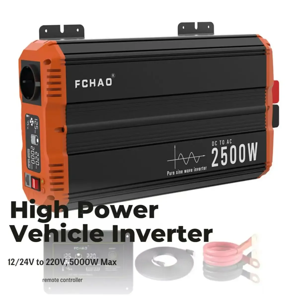 FCHAO12V/24V Vehicle Inverter - Pure Sine Wave Converter,2500W Continuous/5000W Peak, with Remote Control, for Car, Camping,etc