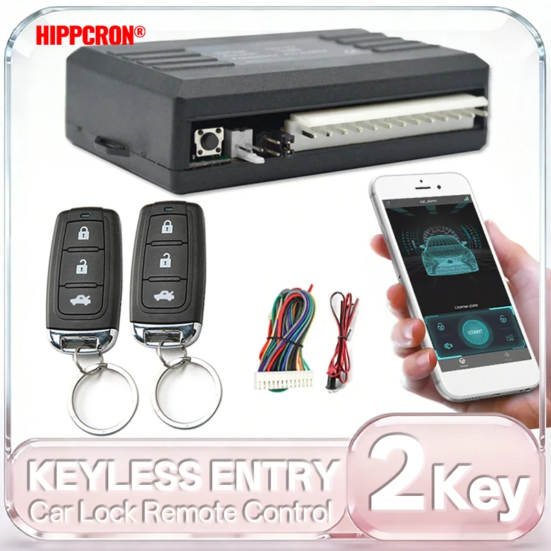 HIPPCRON Car Remote Central Door Lock APP Mobile Control Central Door Locking Vehicle Keyless Entry System with 2 Remote Control