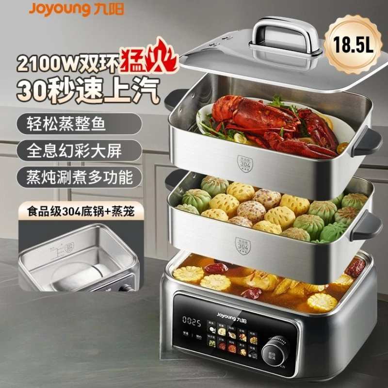 Joyoung electric steamer multi-functional household three-layer 304 stainless steel cooking and stewing integrated pot