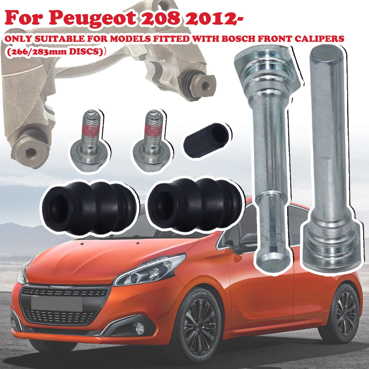 Front Brake Caliper Slider Guide Pins Bolt Kit For Peugeot 208 2012 - Left Right Disc Housing Bellows Sleeve Bushing 113-1355X
