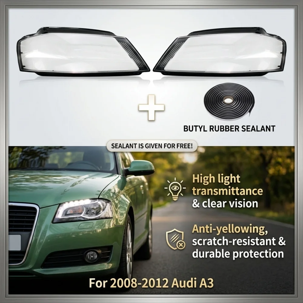 For 2008 2009 2010 2011 2012 Audi A3 Headlight Cover Headlamp Shell Glass Light Lampshade With Sealant * 4M