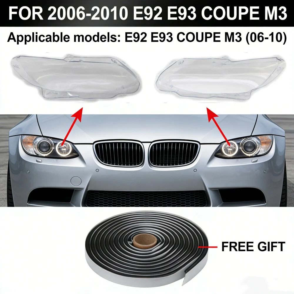 2pcs Car Front Headlight Lens Cover Halogen For 2006-2010 BMW E92 E93 Coupe M3 Glass Auto Lampshade Transparent