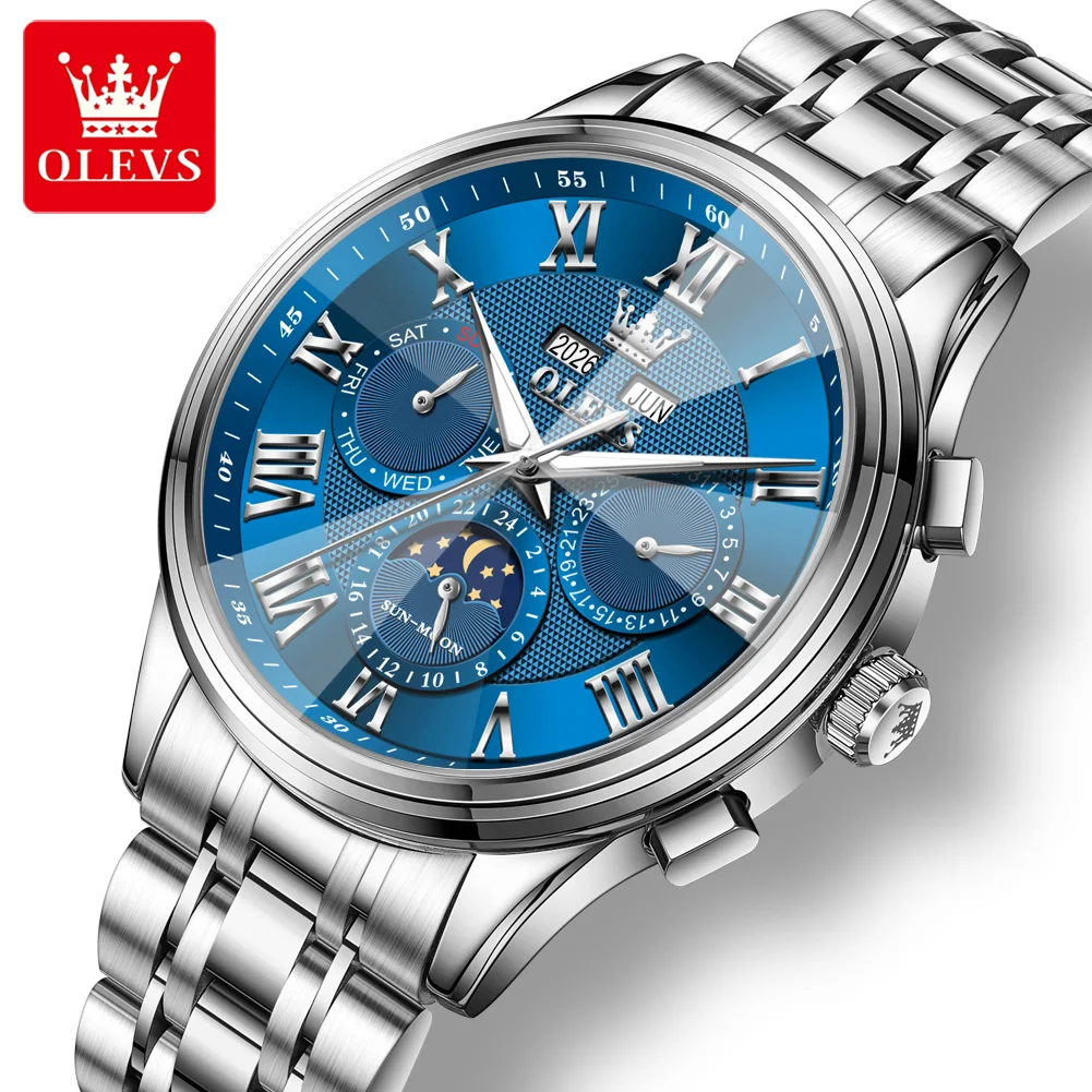 OLEVS 7113 Automatic Men's Watches Original Luxury Mechanical Man Watch Waterproof Stainless Steel Moon Phase Wristwatch for Men