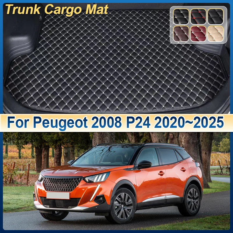 Car Trunk Mat For Peugeot 2008 2024 P24 2020~2025 Anti-dirty Leather Cargo Storage Cushion Boot Carpet Pad Interior Accessories