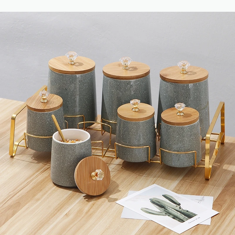 Handle Wooden Ceramic Airtight Jar Kitchenware Food Container Storage Whole Grains Storage Box Home Organizer
