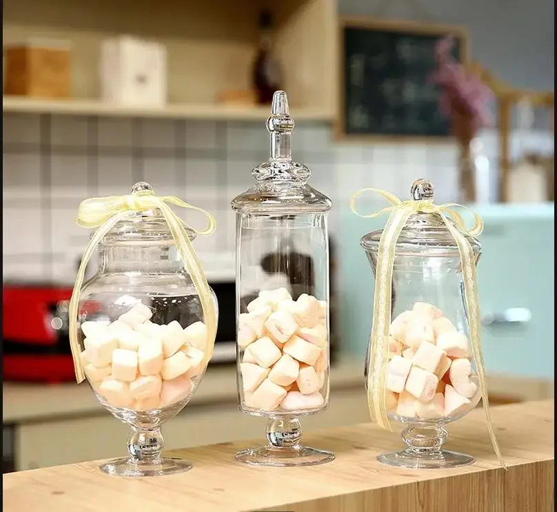 European Storage Jar with Lid Wedding Decoration Transparent Glass Candy Home Snack Coffee Bean