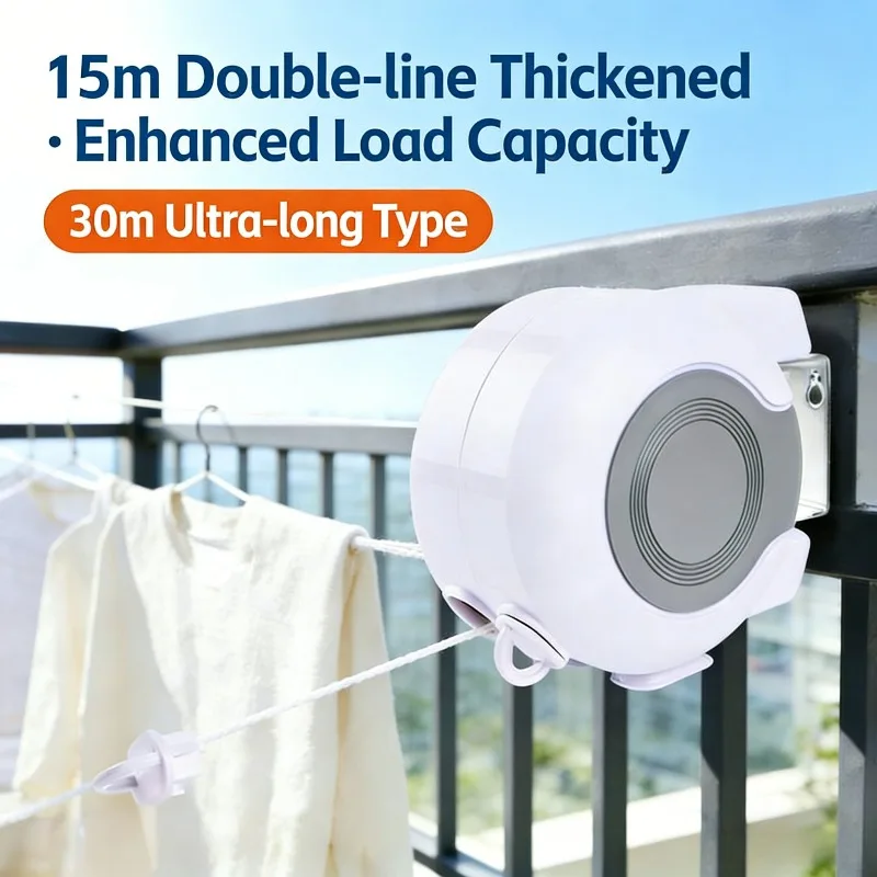 10M Retractable Clothesline - Adjustable Portable Drying Rope for Camping, Travel & Laundry Use