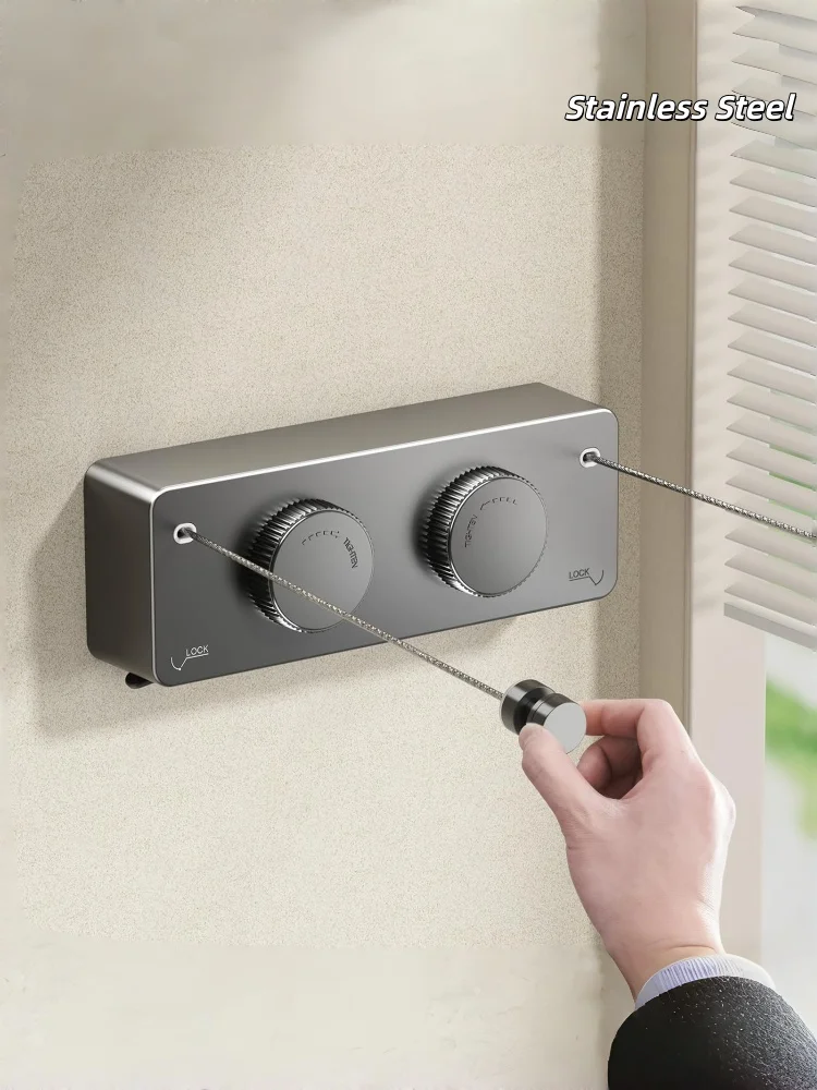 Double Line Clothesline Shrinkable Outdoor Wall Mounted Clothes Line Heavy Duty Balcony Bathroom Invisible Clotheslin