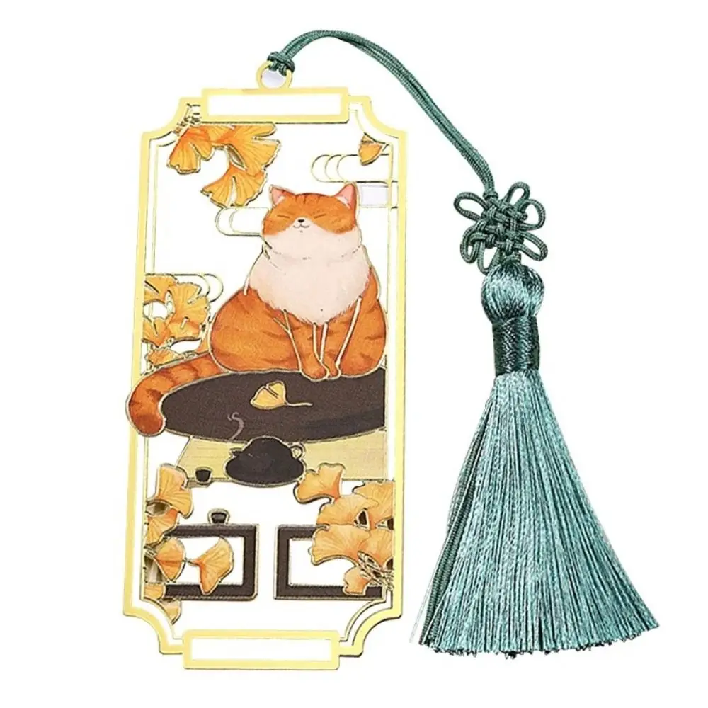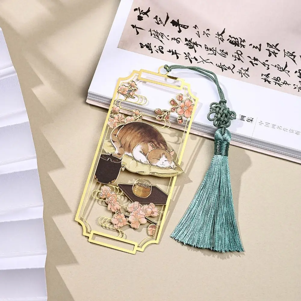 Cat Hollowed Cat Bookmark Tassels Chinese Style Metal Reading Bookmark Flower Fashion Chinese Style Bookmarks Office Supplies