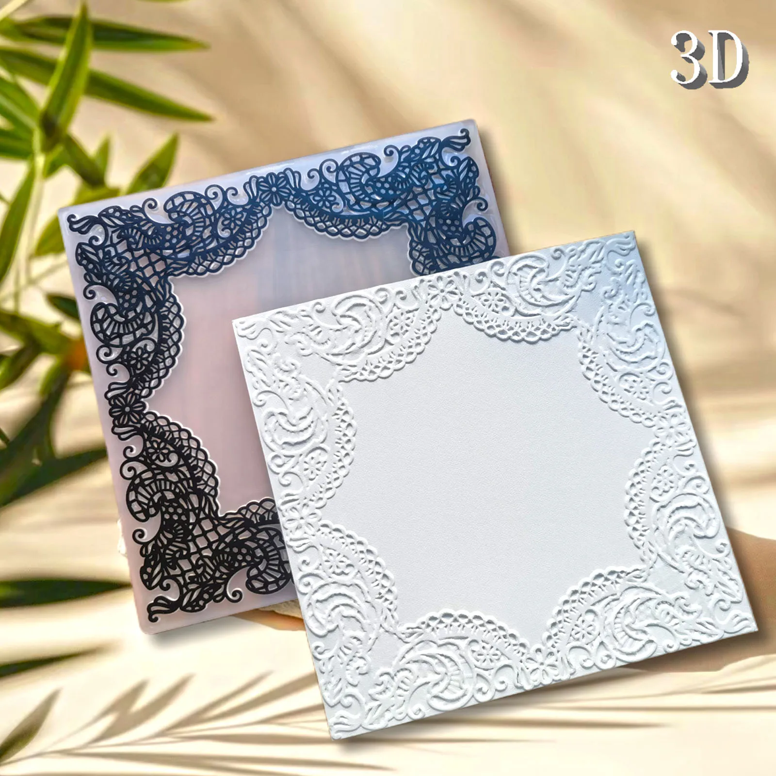 Square European silk frame 3D embossed folder and matching die-cutting, used for business card printing and scrapbook - durable