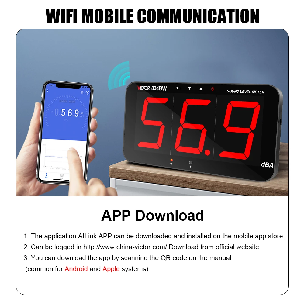 Victor 834BW Wall Mounted Digital Sound Level Meter 30-130dB Noise Detector LED Display Decibel Monitor for Bar Office KTV