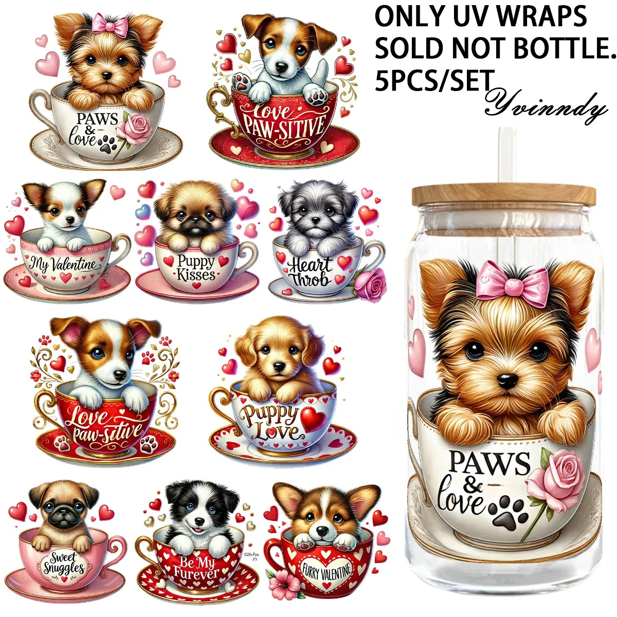 5Pcs/Set Valentines Puppy 16OZ Glass Jar Transfer Paper UV DTF High Self-Adhesive Transfer Paper Suitable For Decorating Cups