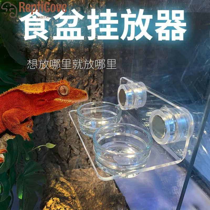 Bearded Dragon Feeder Chameleon Bug Bowl Reptile Feeder Box Wall-Mounted Insect with Suction Cups Tank and Aquarium Accessories