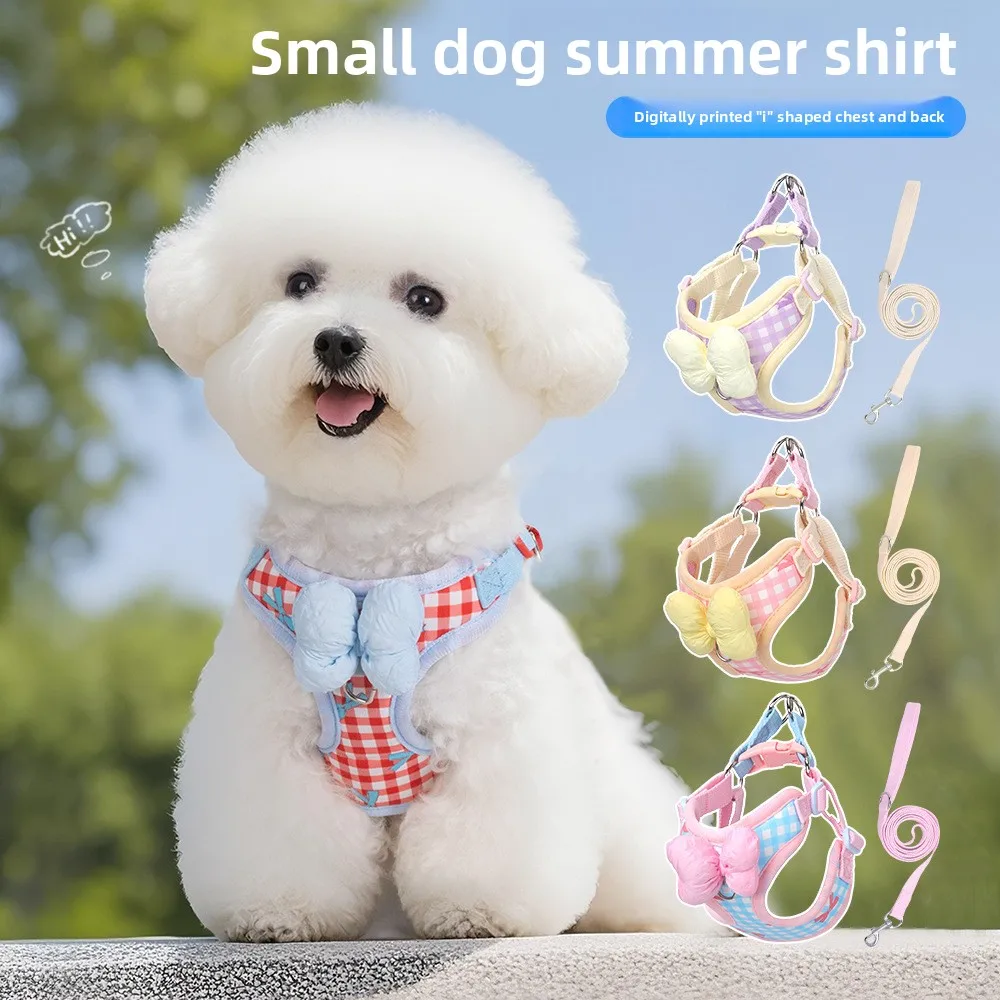 Dog leash Bow dog chest back plaid Korean outdoor walking dog Bi Xiong teddy dog leash