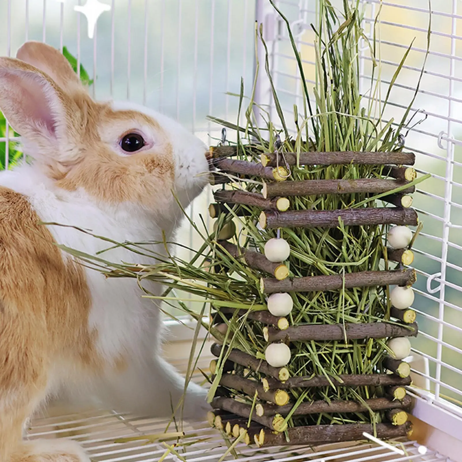 Bunny Hay Feeder 3x7inch Natural Wooden Container Funny Hay Rack Livestock Feeder for Hamster Chinchilla Mouse Small Animal Pet