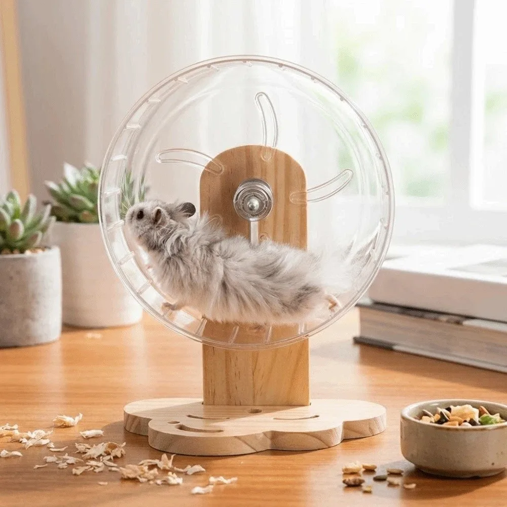Transparent Hamster Exercise Wheel Adjustable Height Sturdy Silent Running Wheel Thickened Wooden Stand Pet Exercise Toy