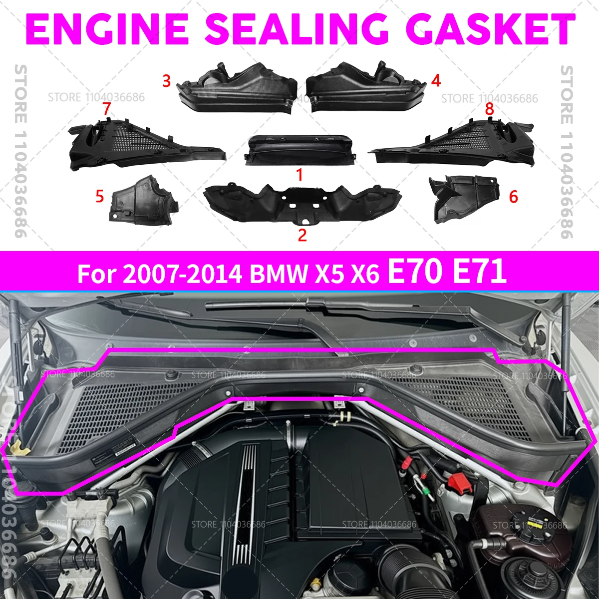 For 2007 2008 2009 2010 2011 2012 2013 2014 BMW X5 X6 35iX 50iX M E70 E71 LCI Hyb Car Engine Upper Compartment Partition Panel