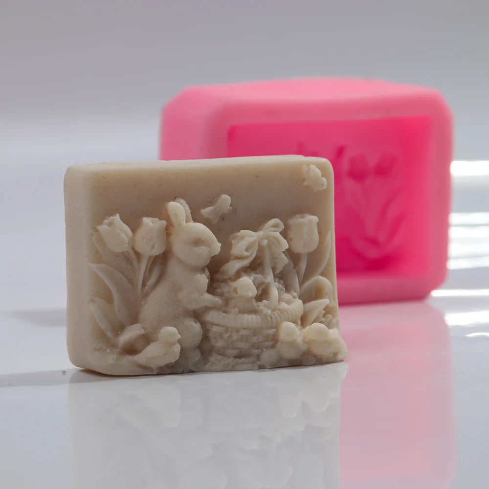 Cute Rabbit Silicone Soap Mold DIY Rabbit Plant Relief Plane Aromatherapy Candle Soap Mold Cake Decor Baking Tool Easter Gift