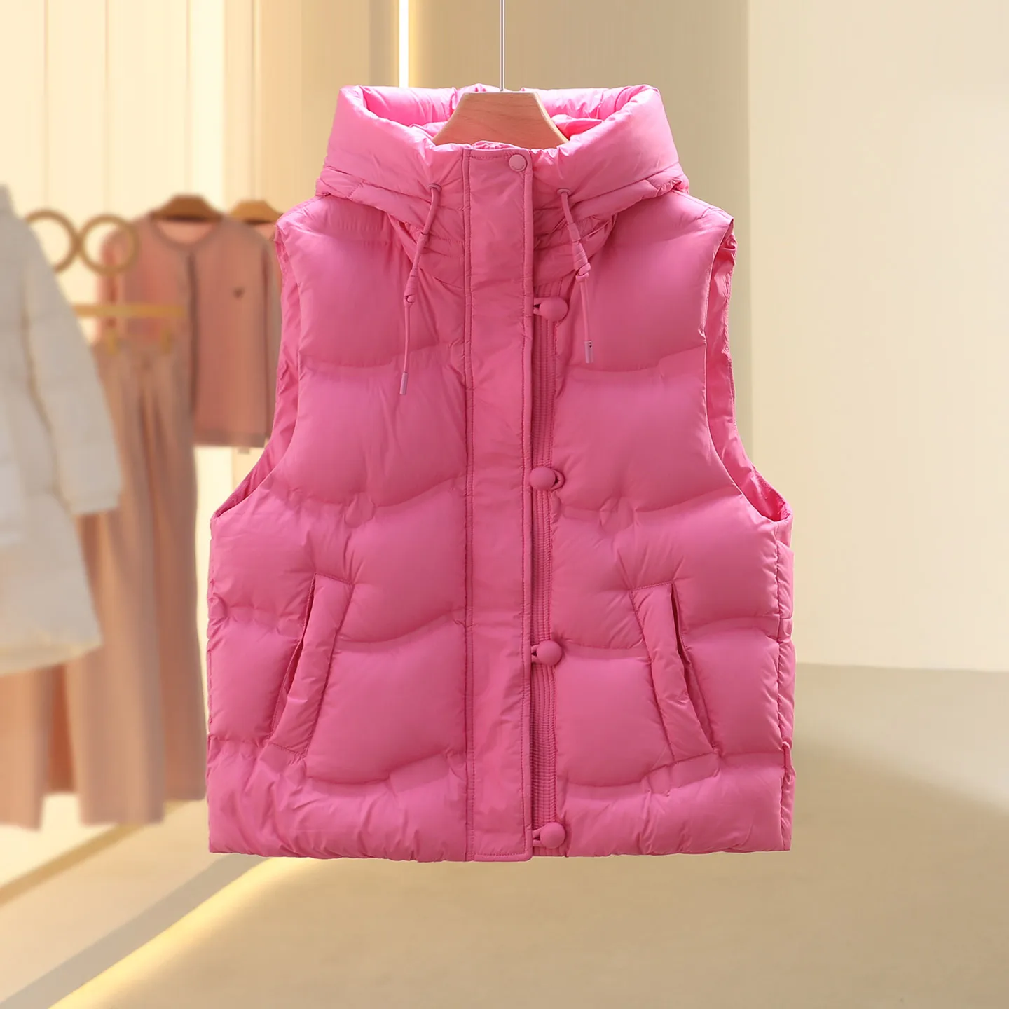 Anti-Aging down Vest Design Sensibili Winter New Women's Faion Du down Jaet Warm Coat with Hood Non-Removable