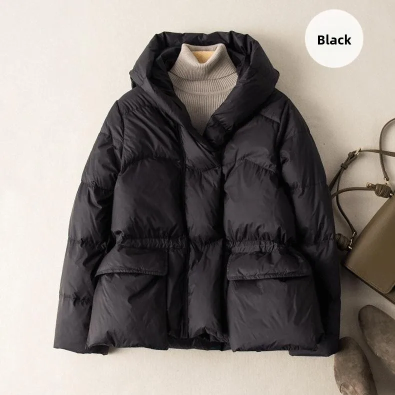 White Du down Puffer Jaet Women's Loose Fitting Warm Coat Belted Sli Hooded High End Winter Outerwear Commute Sle