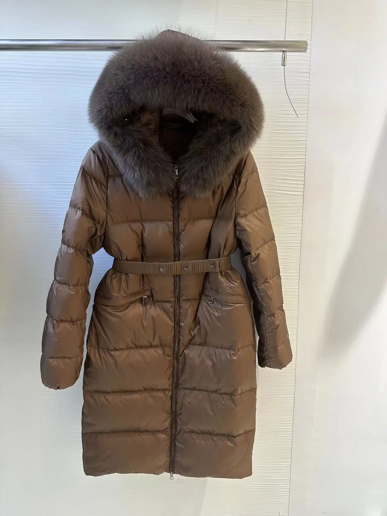 2025 New Premium Fur Collar Goose down Puffer Jaet Women Long over Knee Loose Thiened Hooded Outerwear Casual Sle