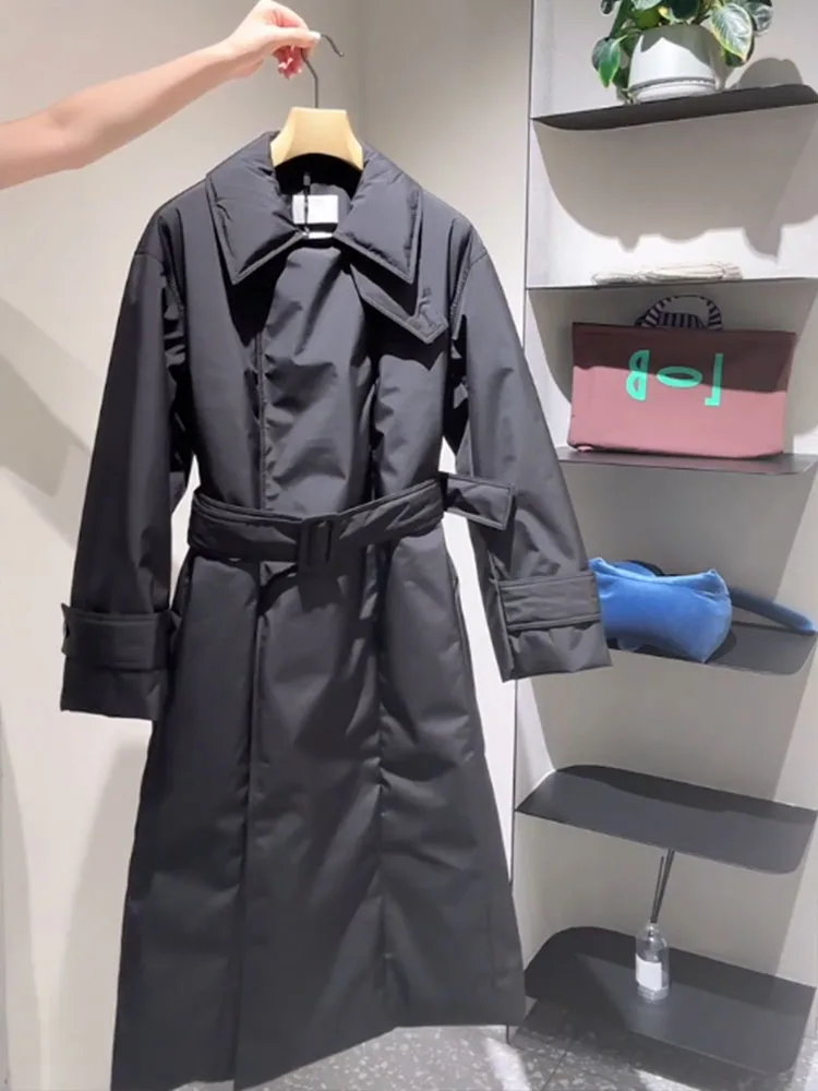 Women's Long down Jaet 2025 Winter New Sle Small Size Thi White Du Feather Coat Waist Cinched Hooded Warm Outerwear