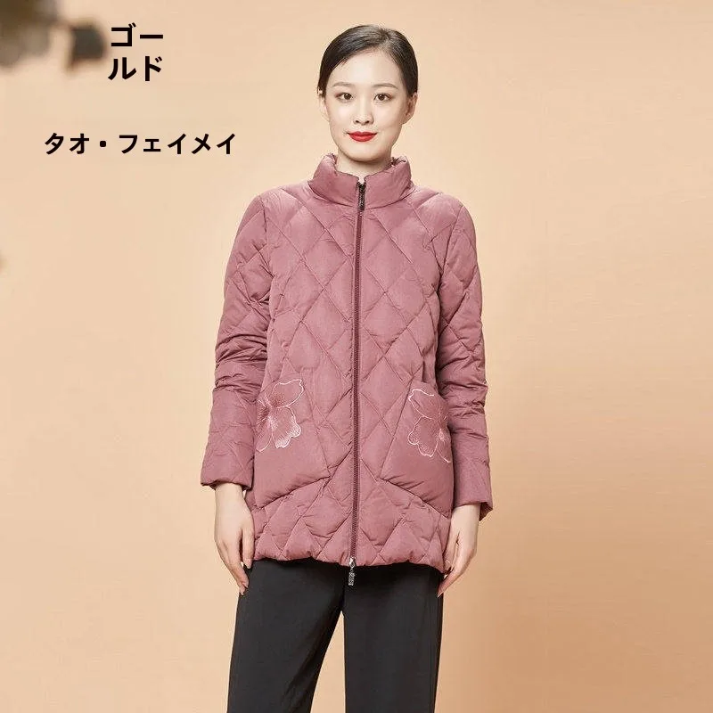 Tao Yumei White Du down Puffer Jaet Embroidered 90% down Fiber Diamond Stitch Patch ket 2023 Autumn Collection