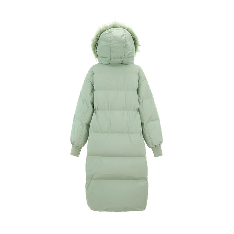 9MII White Du down Jaet Women's Long Coat with Fur Collar High End Winter Faion Polyester Fiber Fill Power 90%