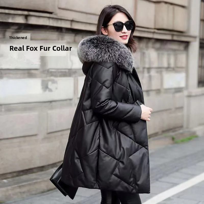 Haining Genuine Leather Jaet Du down Cotton Coat Women's Mid-Length Winter New Sle eepskin Fur Thiened Fur Coat