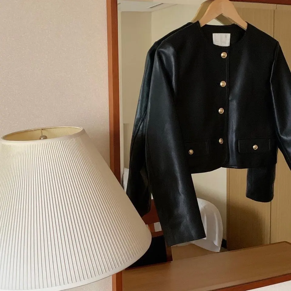 Casual Chic Single-Button Leather Jaet Women's Outerwear Polyester Fiber Regular Thin Loose Fit Inner Wear Sle
