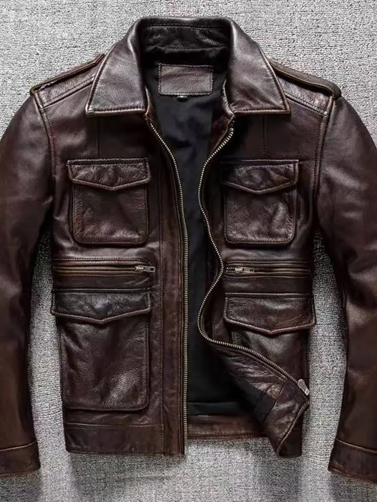Vintage Heavyweight M65 Hunting Workwear Top Layer Leather Jaet Men's Retro Distred Collar Nostaic Biker Jaet Coat
