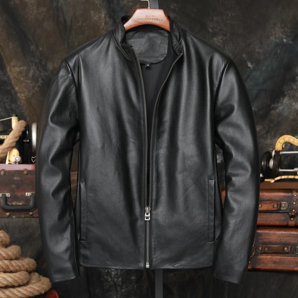 Slim Fit Genuine Top Layer Cowhide Leather Jaet Men's Faion Urban Sle Casual Youth Autumn Winter Coat Single Button