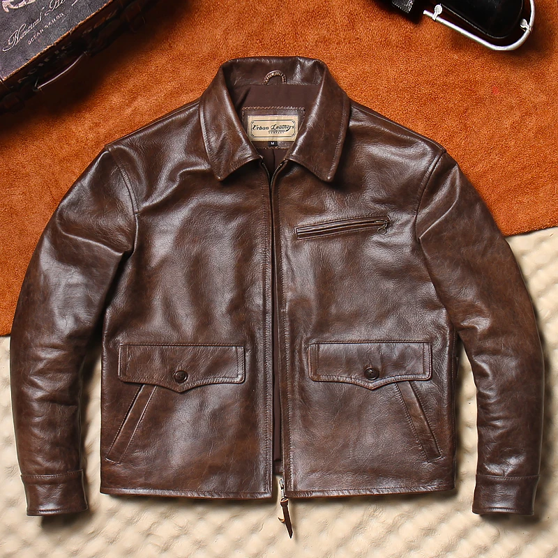 Urban Baron Men's Genuine Leather Jaet Non-Waxed Dyed Top Layer Cowhide American Retro Motorcycle Jaet Faionable Urban ...
