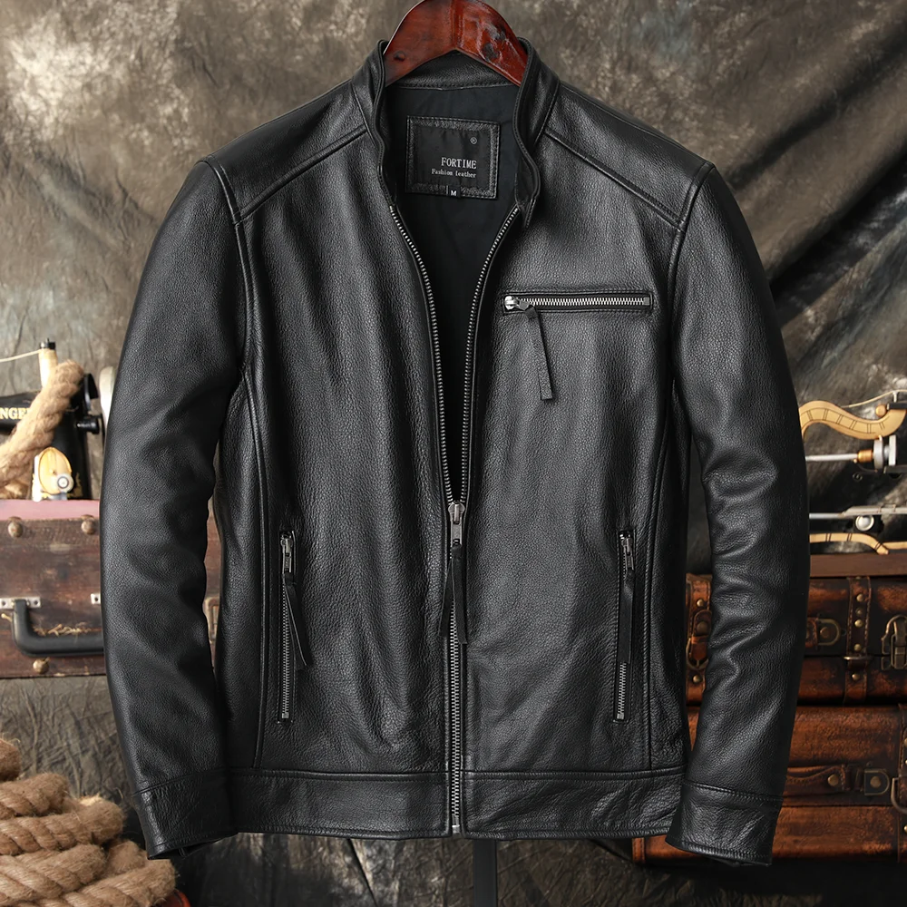 Classic Harley Real Leather Jaet Men's Stand Collar Heavyweight Motorcycle Biker ort Coat Urban Baron Youth Vitali Sle