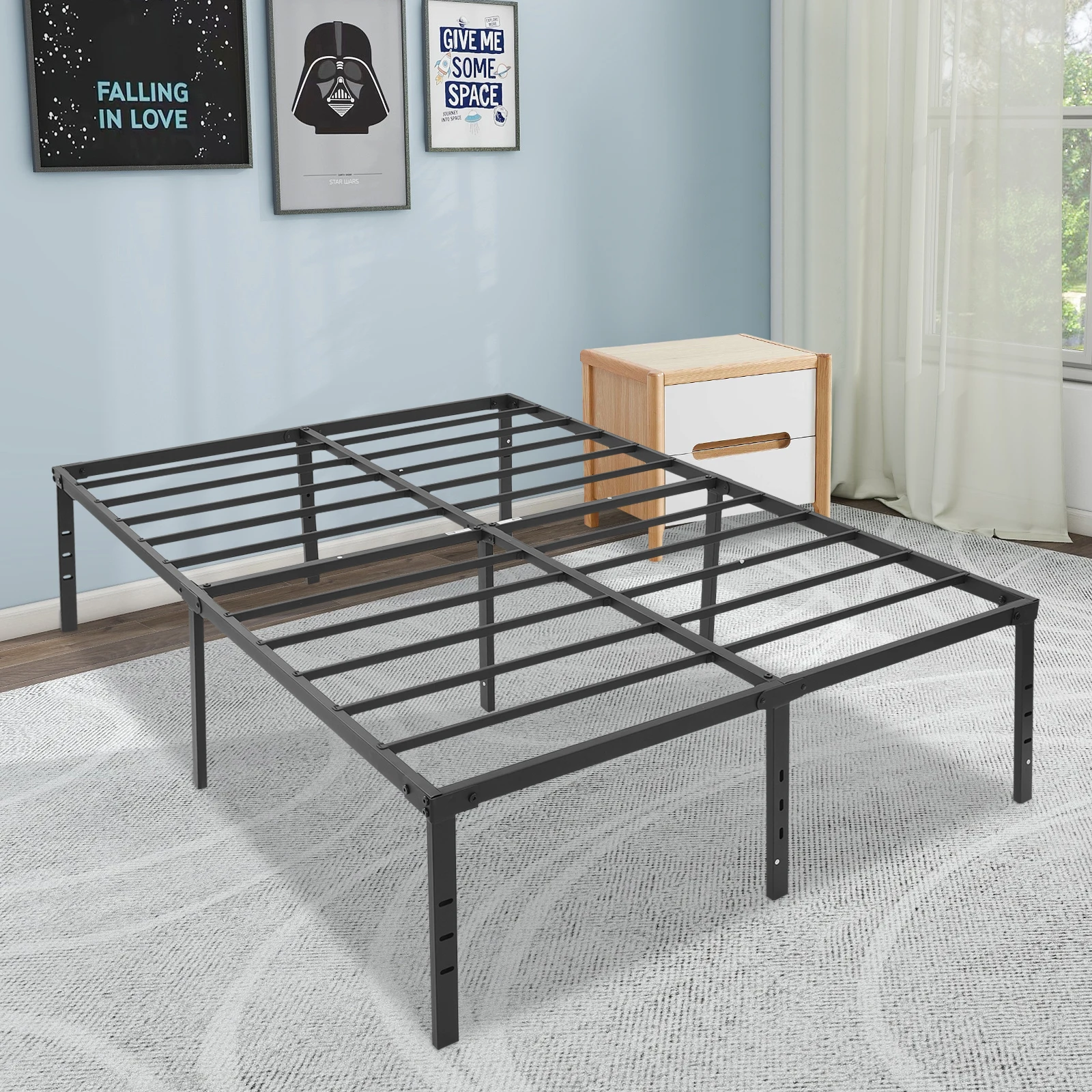 Heavy Duty Black Metal Bed Frame, 74.5*53.5*18 in, 1100lbs Capacity, Collapsible & Easy Assembly, with Anti-Slip Pads