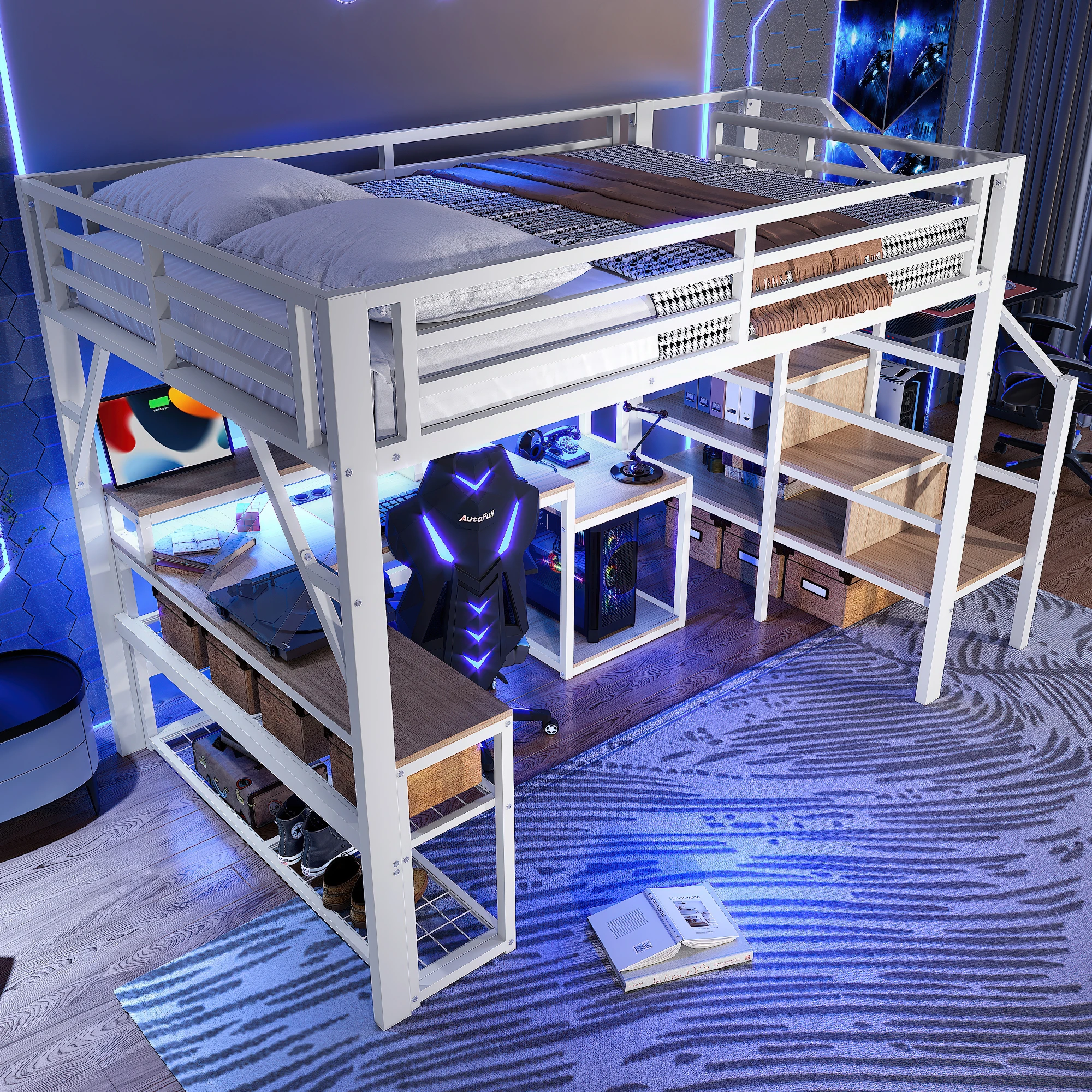 MODFU High Bed 140x200 Gaming bed with desk USB and LED White