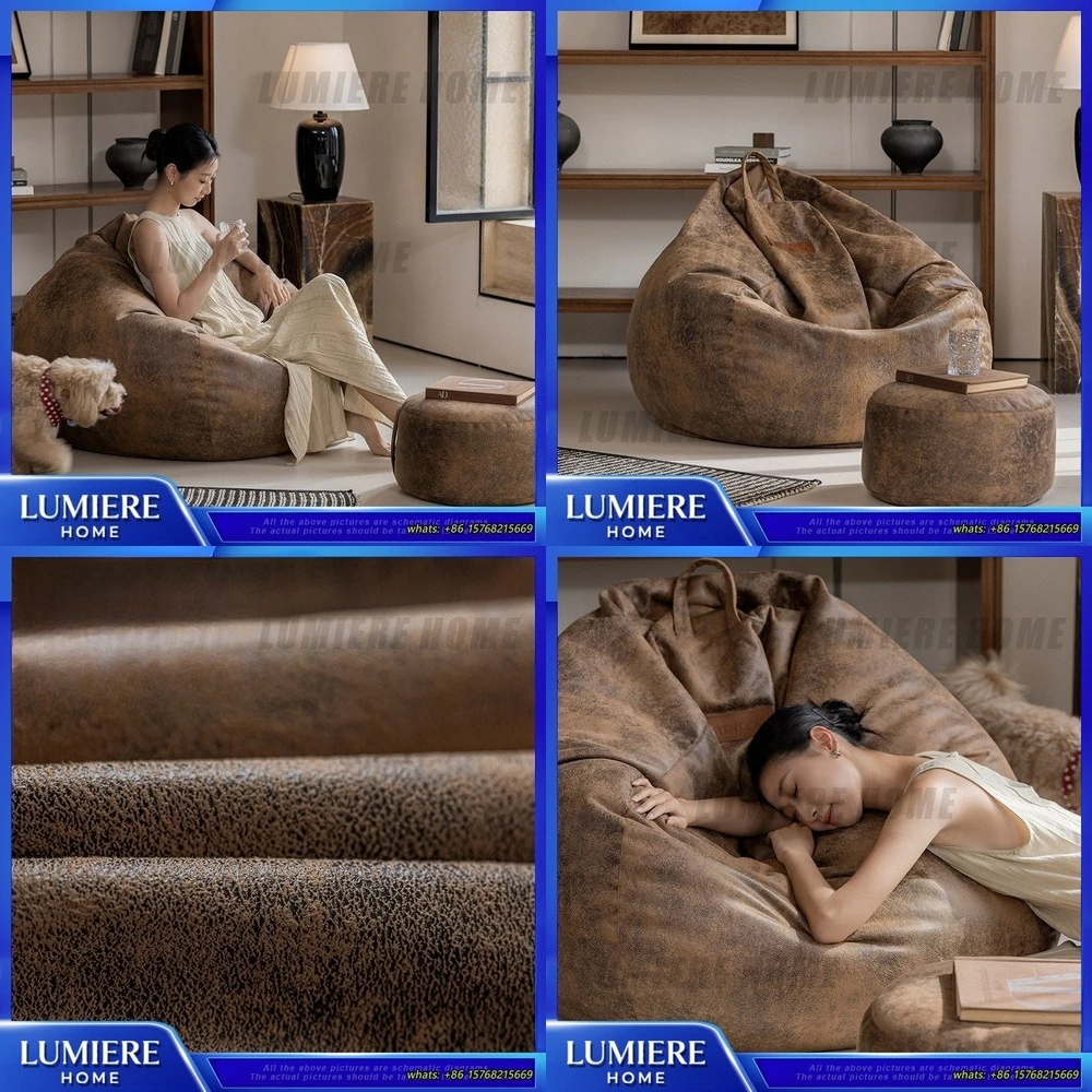 Italian Nordic Balcony Bean Bags Floor Modern Brown Single Floor Living Room Sofas Bedroom Puffs Lazy Canape Salon Furniture