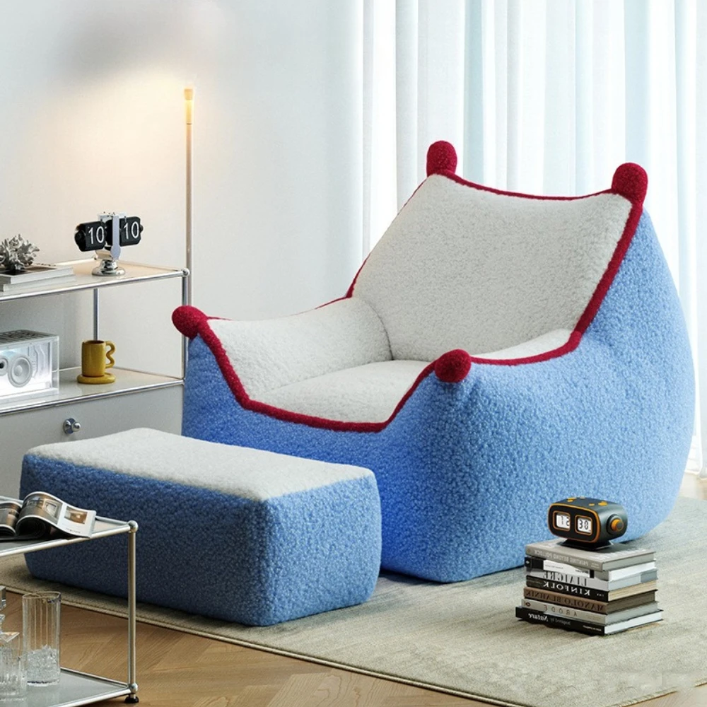 Nordic Cute Lazy Sofa Bean Bag - Single Lounge Chair with Footrest for Balcony Bedroom Lay Down & Sleep