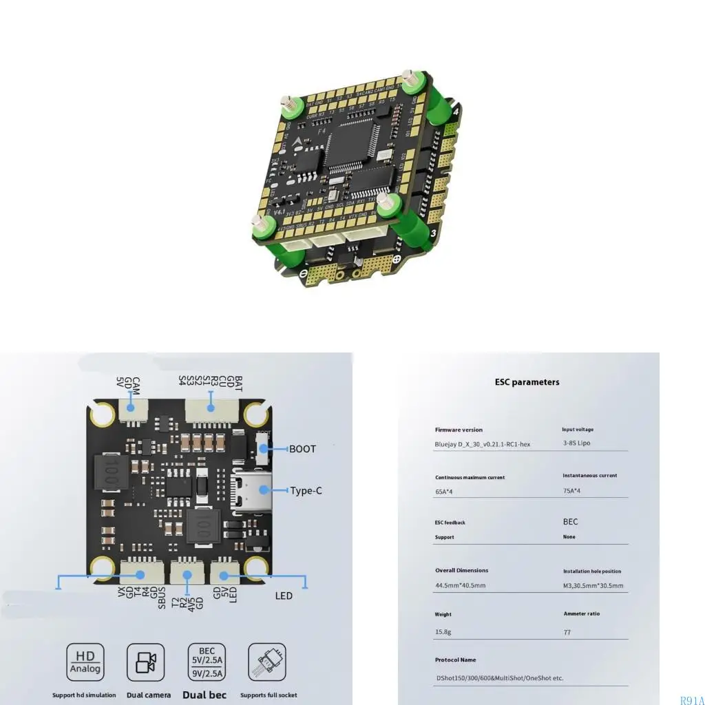 R91A F465S F475S Aircraft ESC 65A Continuous Current Responsive Control Lightweight Design Optimized Heat Dissipation
