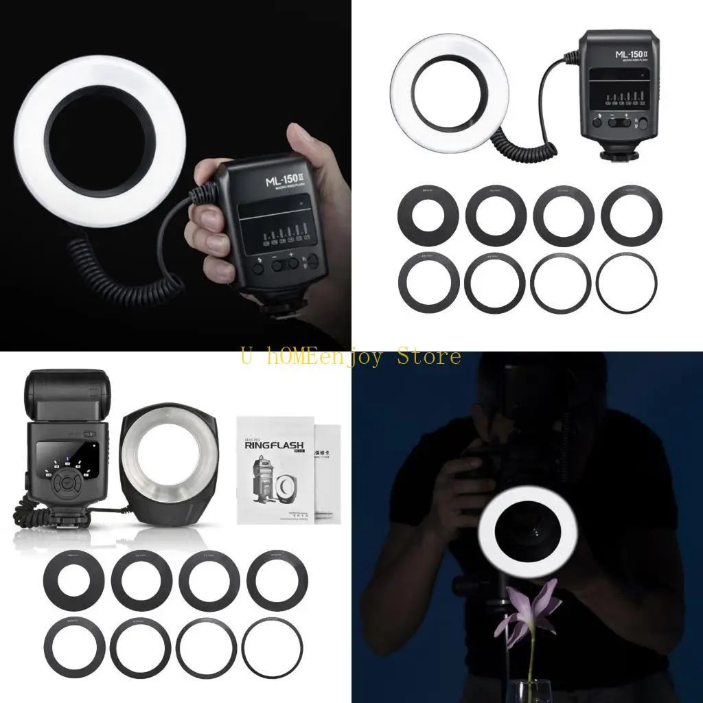 【KR&MX】Godox ML150 II Macro Ring Flash with 8pcs Adapter Ring for Sony Canon Nikon Fuji Olympus Panasonic DSLR Cameras