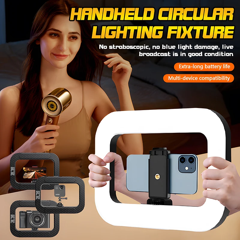 Roreta Handheld Ring LED Rechargeable Portable Mobile Phone Live Broadcast Photography Desktop Rabbit Cage Selfie fill Light