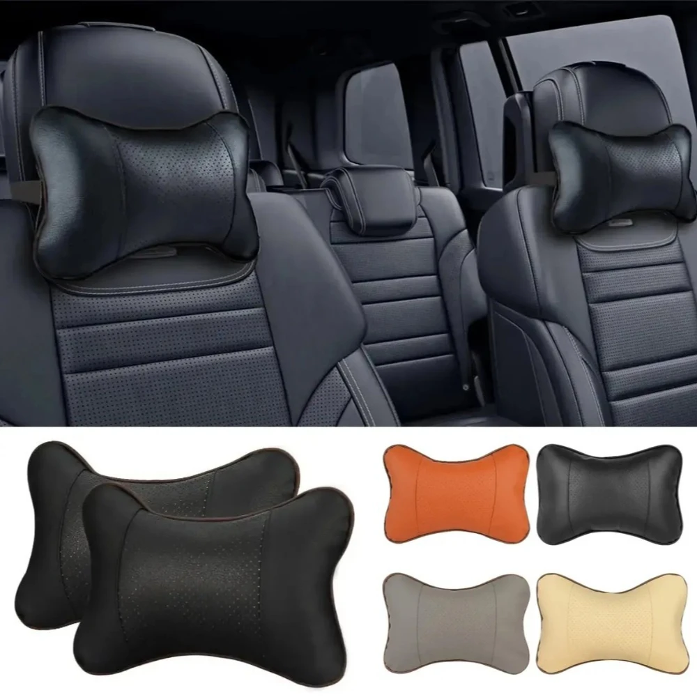 1pc PU Leather Car Neck Pillow Universal Headrest Pillow with Fiber Fill for Comfort Head Pain Relief in Vehicles