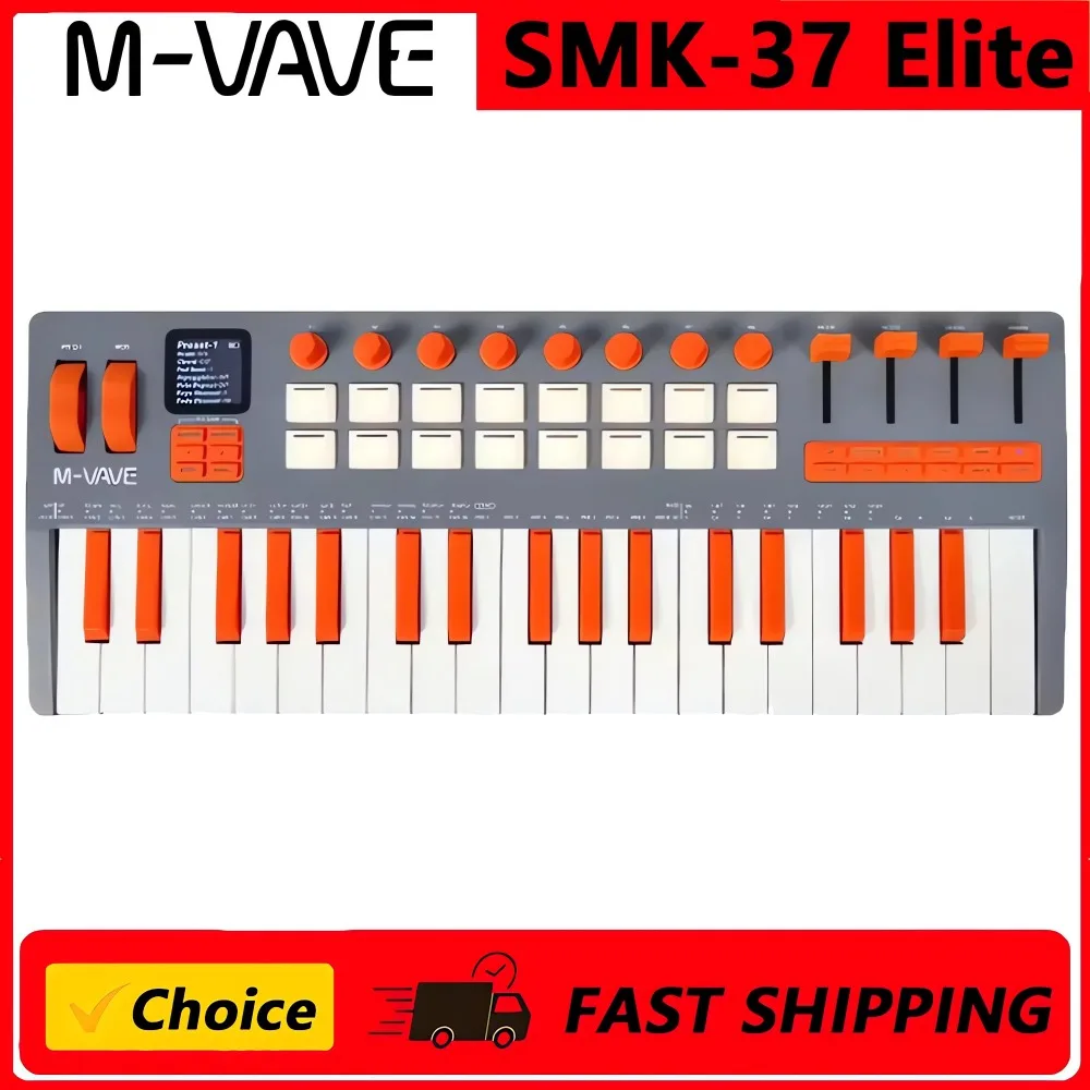 M-VAVE SMK-37 Elite MIDI Keyboard with Weighted Keys,Portable for Mobile Built-in Synthesizer Sounds, Live Performance,