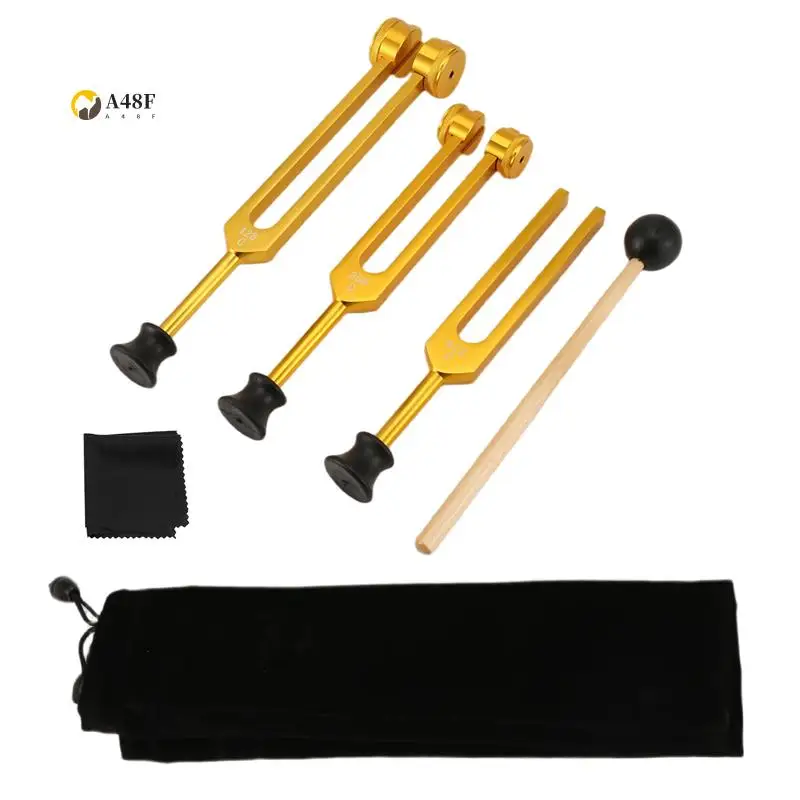 A48F-3Pack Tuning Fork Set Chakra Tuning Forks For Healing, Chakra, Sound Therapy, Sonic Slider Fork (Gold)
