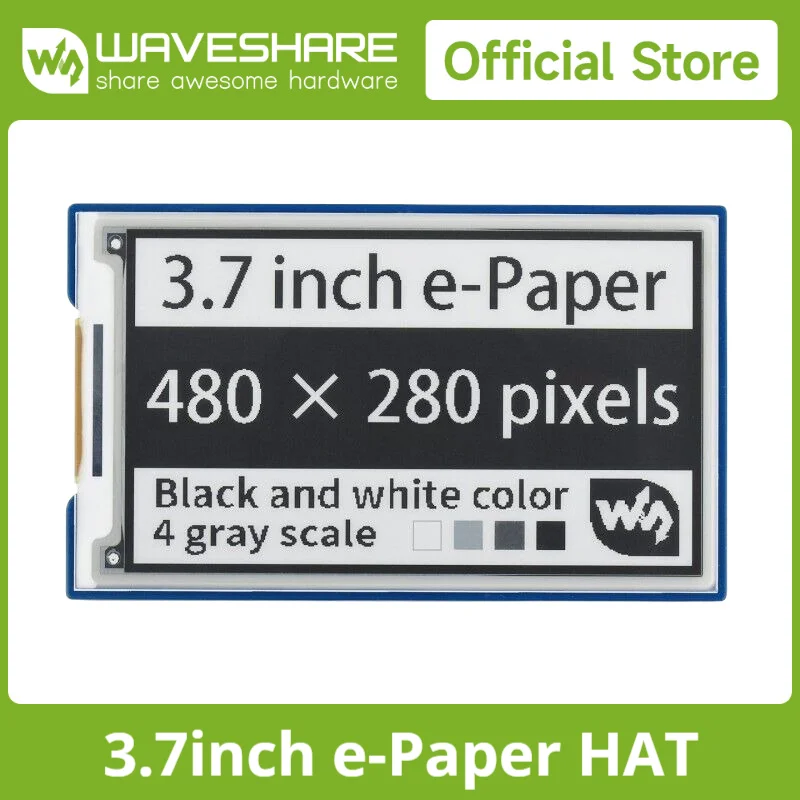 Waveshare 3.7inch e-Paper e-Ink Display HAT For Raspberry Pi, 480*280, Black / White, 4 Grey Scales, SPI