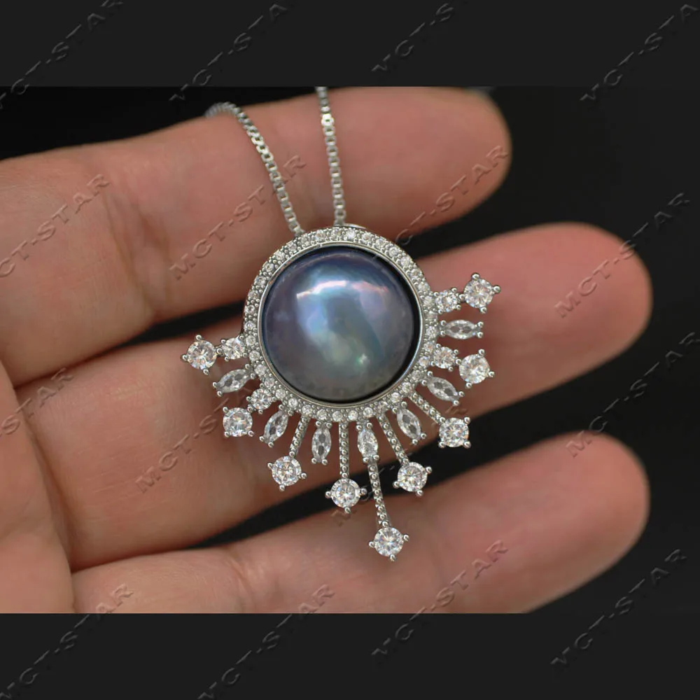 Z14427 35mm Blue South Sea Mabe Pearl Apollo's Sunshine CZ Pendant Brooch