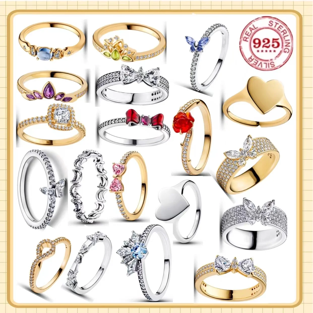 Rings 100% 925 Sterling Silver Lotus Pendant Fringe Evil Eye Heart Shaped Knit Rings Fine Wedding Engagement Shiny Jewelry Gift