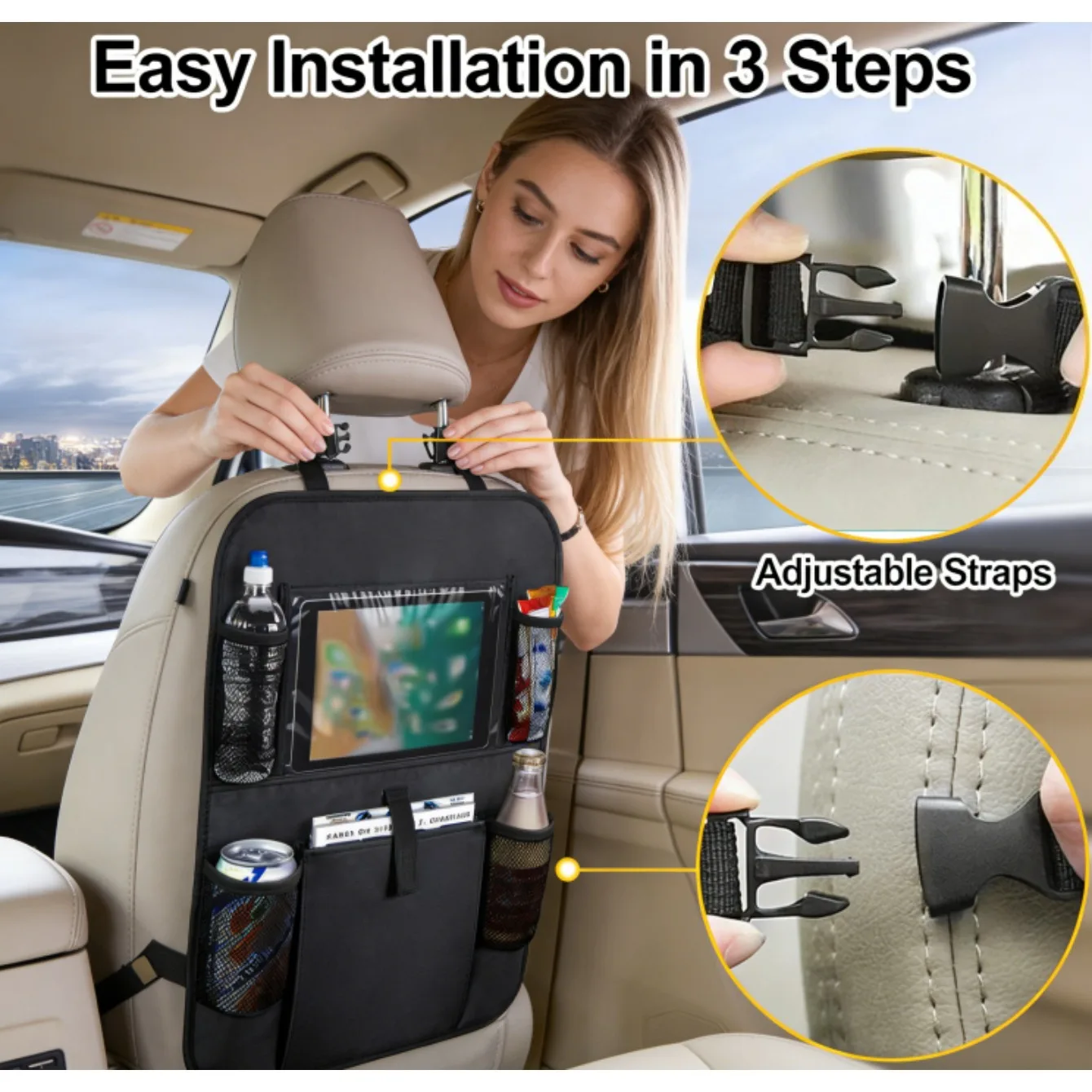New Car Seat Protection Cover Car Seat Kick Proof Pad with Pockets PU Auto Seat Back Storage Bag Multi-functional Tablet Holder